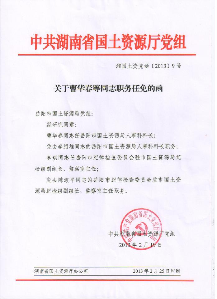 关于曹华春等同志职务任免的函