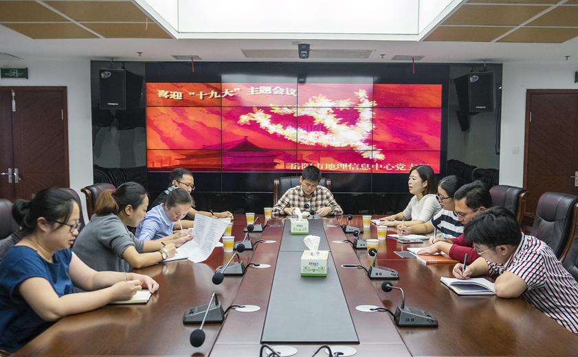 9月21日上午,地理信息中心支部在二楼会议室召开“喜迎十九大”主题会议,支部全体党员集中学习党章、重温党的历史,重点围绕年度党建工作计划落实情况展开讨论,纪检、组织、宣传委员分别就下一步加强理论学习、帮扶联点社区、参观红色教育基地、建设党建活动室等事项发表意见。