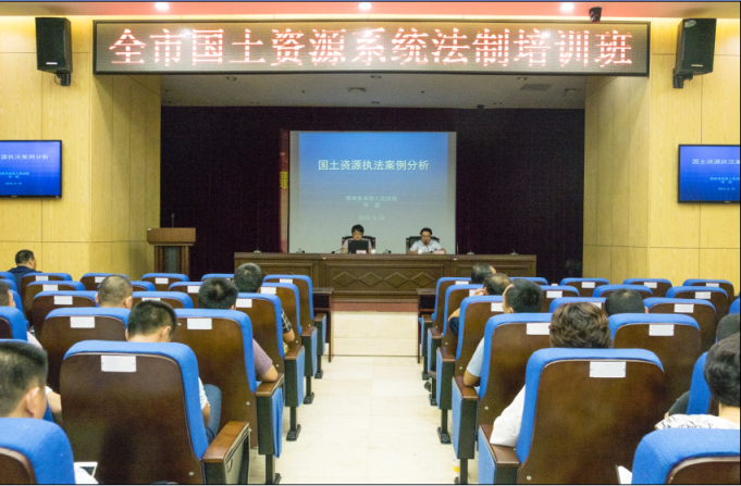 2016年9月18日,全市国土资源系统法制培训班在市局开班,市局党组成员、纪检组长周治中主持,局机关科室、二级机构全体工作人员,各县市区局(分局)分管局领导和法规股有关工作人员等共计187人参加培训。