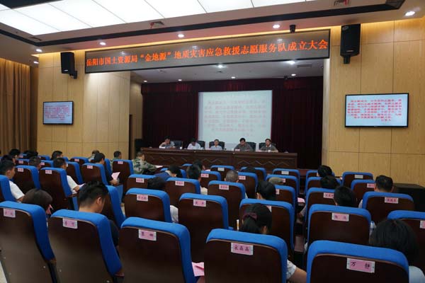 为配合做好地质灾害防治工作,提高突发地质灾害应急处置的快速反应能力,扩大我局志愿服务队服务范围,6月1日,我局举行“金地源”地质灾害应急救援志愿服务队成立大会。市局党组成员、纪检组长周治中主持会议,党组副书记、副局长易拓新,党组成员、总经济师陈湘栋出席会议,市局地质环境科科长陈颖宣读了《关于组建岳阳市国土资源局金地源”地质灾害应急救援志愿服务队的通知》。各分局分管地环工作,共青团工作领导、市局土整中心、储备中心分管负责人、市局地质环境科、地环站、机关党委、机关团委、志愿服务队全体队员参加会议。