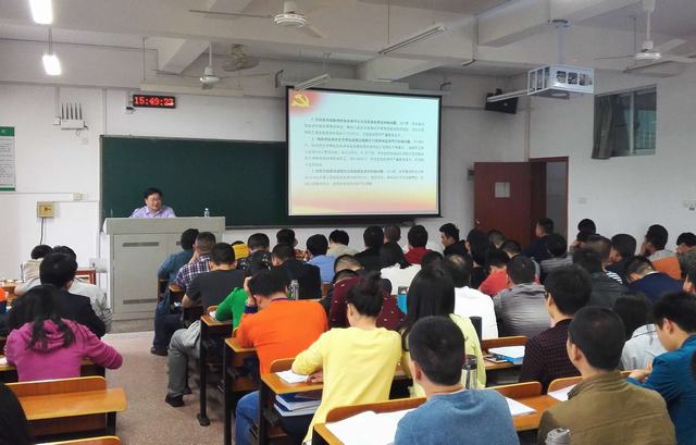 4月25日,岳阳市国土资源局党组成员、纪检组长周治中来到湖南农业大学资源环境学院看望了参训的80名学员,并为学员讲授了一堂题为“一以贯之严作风,一抓到底守纪律”的廉政建设的辅导课。市局人事科负责人一同参加。