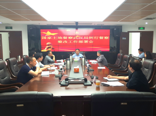 局党组成员、执法监察支队长彭四林通报了国家土地督察武汉局例行督察初核情况,局领导及相关科室、二级机构负责人就土地督察整改工作进行了讨论研究。