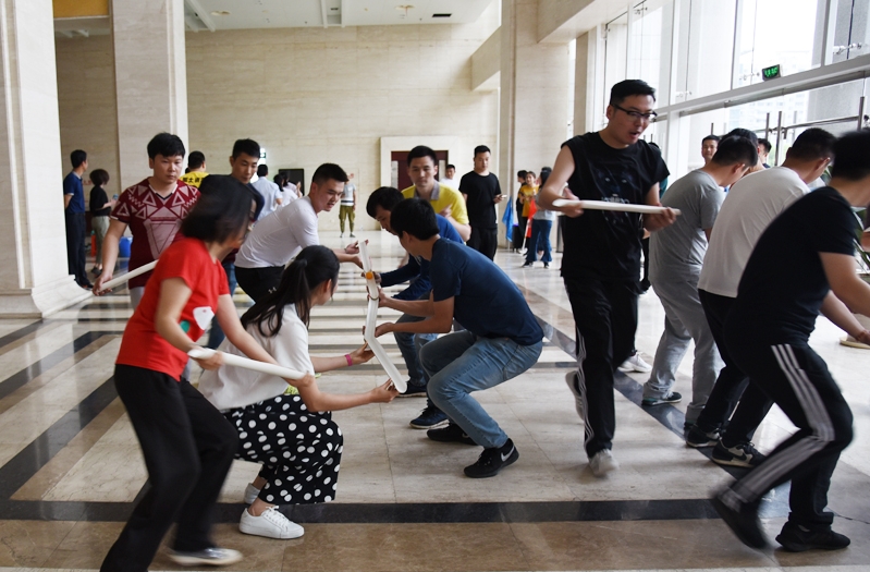 此次趣味运动会设有合力运输、共赴前程、旱地龙舟、一圈到底、众星捧月五个拓展训练项目,共有来自市局机关科室、二级机构及各分局50名青年干部职工分5组参加比赛。