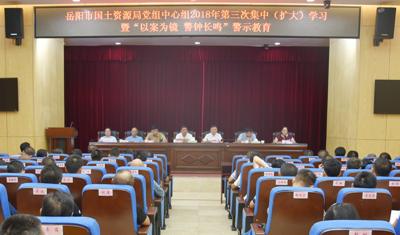 9月21日,市局举办党组中心组2018年第三次集中(扩大)学习暨“以案为镜 警钟长鸣”警示教育。党组理论学习中心组成员胡辉、易拓新、严菲、李志宏、陈湘栋、周治中、罗雯,市局调研员、副调研员,机关全体干部职工,各分局、城陵矶新港区国土资源管理处及局属二级机构副科职以上干部,各县市区局主要负责人参加学习,邀请市纪委监委派驻市局纪检组全体成员,各县市区派驻纪检国土资源局纪检组组长参加。会议由党组副书记、副局长易拓新主持。