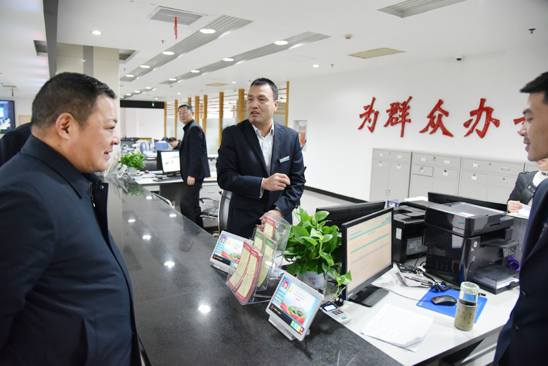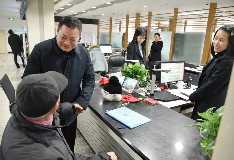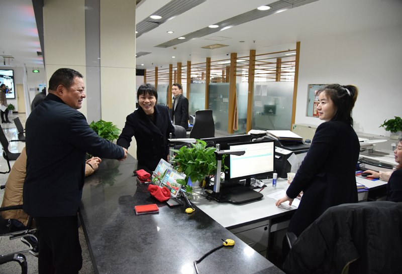 胡辉与窗口工作人员一一交流,他代表局党组向全体窗口一线工作人员送上节日的问候和新春的祝福,对窗口工作人员一年来的辛勤付出表示感谢,对大家坚守岗位、尽职尽责、为民服务给予了肯定和赞扬。