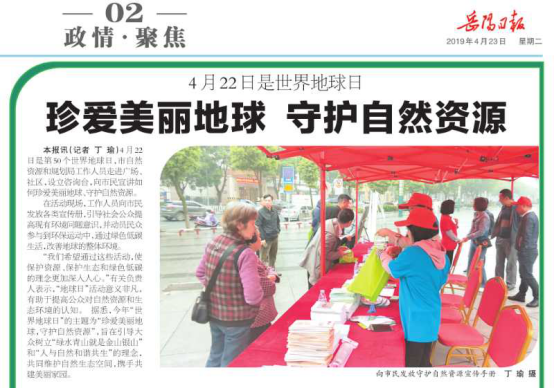 4月22日,在岳阳日报整版刊登了世界地球日图文宣传知识、并对“4.22”现场活动进行了宣传报道,同时还在岳阳电视台新闻频道播放了开展世界地球日主题宣传系列活动新闻。通过微信、微博方式,推出围绕地球日主题的系列宣传,以生动的形式宣传、报导了地球日的相关信息,扩大了地球科学知识的社会影响面。