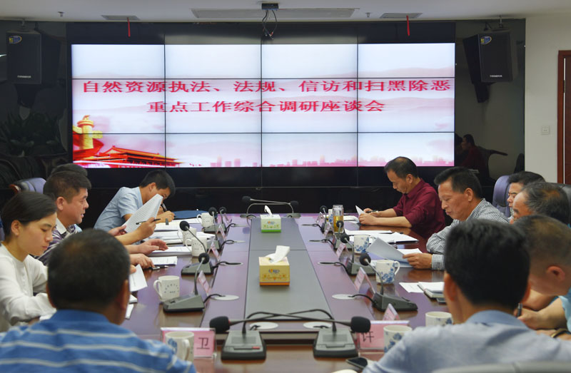 5月24日,省厅执法局局长张永忠率调研组来岳开展自然资源执法、法规、信访和扫黑除恶重点工作综合调研,市局党组成员、执法监察支队支队长彭四林,局办公室、法规科、执法监察支队相关负责人参加调研座谈会。