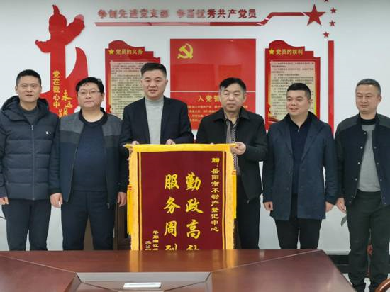 2020年1月15日上午,华融湘江银行岳阳分行行长将一面写着“勤政高效、服务周到”的锦旗送到了我局岳阳市不动产登记中心,对我局优质高效的服务表示感谢。