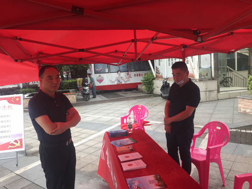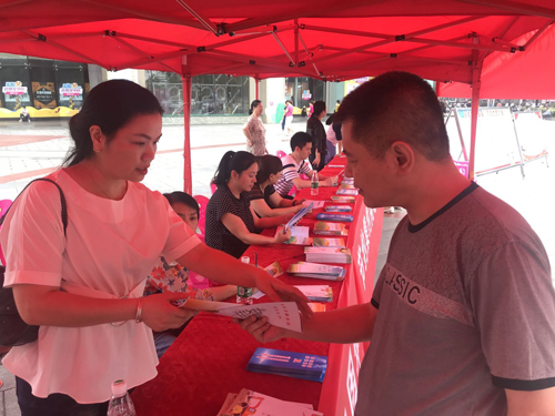 工作人员向群众派发宣传资料。