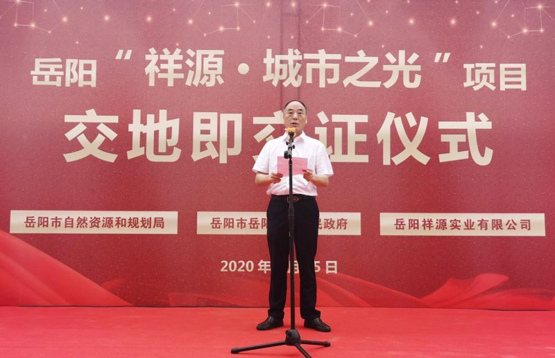 7月15日,市自然资源和规划局、岳阳楼区人民政府和岳阳祥源实业有限公司在岳阳“祥源·城市之光”项目工地隆重举办岳阳市首个“交地即交证”颁发仪式。局党组成员、总工程师李志宏出席并讲话,市不动产登记中心、土地储备中心、岳阳楼区人民政府、岳阳祥源实业有限公司等单位负责人参加。