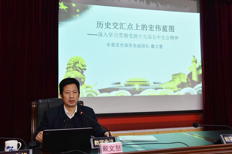 戴文慧以《历史交汇点上的宏伟蓝图——党的十九届五中全会精神学习提纲》为题,紧紧围绕习近平总书记在党的十九届五中全会上的重要讲话精神、考察湖南重要讲话精神及全会审议通过的规划建议,回顾了我国“十三五”时期取得的伟大成就,深入分析了“十四五”时期战略机遇期的新特征和“十四五”规划的核心要义,深入解读了今后一个时期我国发展的指导方针、目标任务和战略举措。宣讲报告主题鲜明、内容丰富、思想深刻,既有历史的维度,又有现实的分析;既有政治高度和理性思考,又有事实依据和实践支撑,对全局广大干部职工深入学习贯彻全会精神具有重要指导和启发作用。