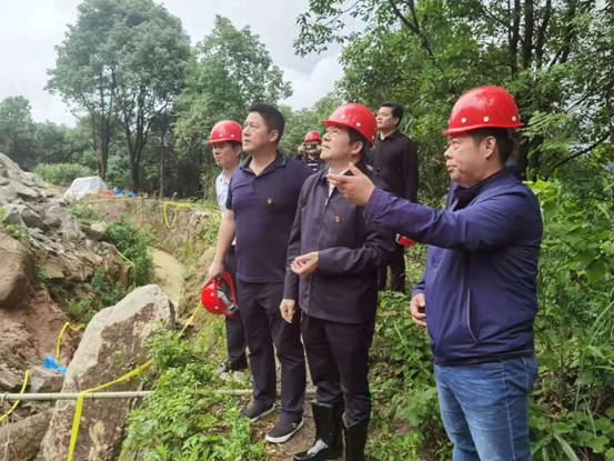 陈峰一行现场查看了汨罗市弼时镇平华村新屋组崩塌地质灾害工程治理项目,详细询问了项目进展情况,并对汨罗的地质灾害防治工作表示充分肯定。