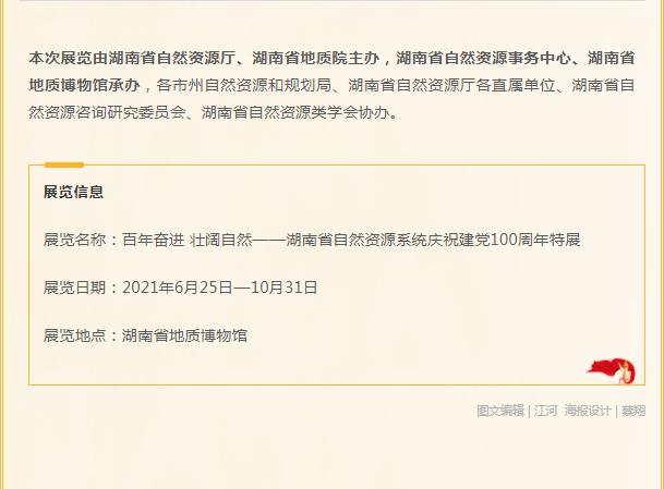 “百年奋进 壮阔自然——湖南省自然资源系统庆祝建党100周年特展”即将开展