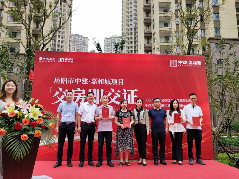 6月20日上午,岳阳市自然资源和规划局与岳阳和城置业有限公司共同举办“中建嘉和城”新建商品房项目“交房即交证”颁证仪式。该项目购房业主在拿到房屋钥匙的同时领到了房屋不动产权证书。