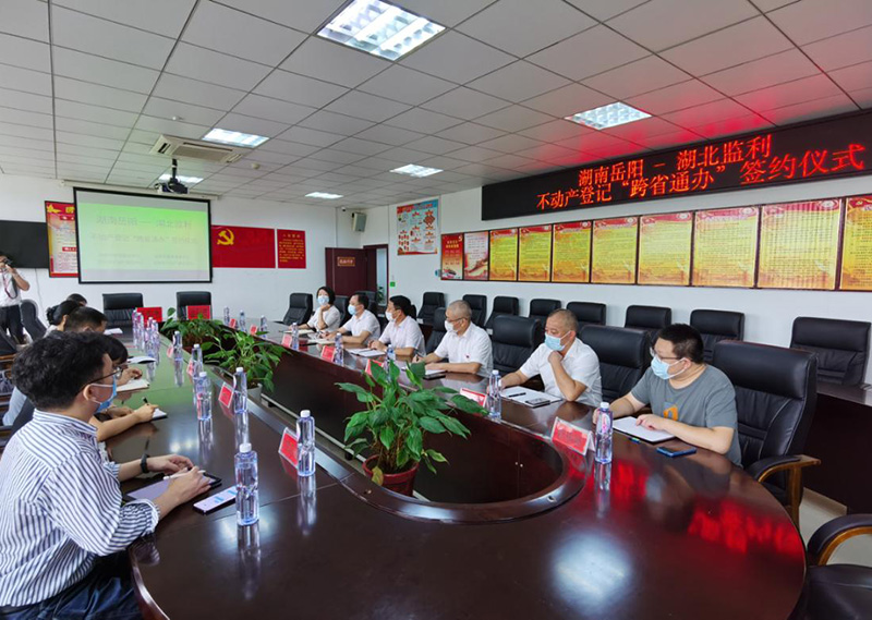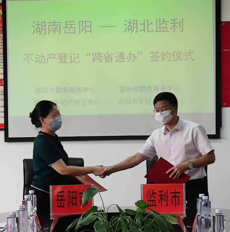 9月8日,为贯彻落实国务院深化“放管服”改革、优化营商环境总体要求,强化岳阳、监利两地不动产登记服务交流与合作,湖南省岳阳市不动产登记中心携手湖北省监利市不动产登记中心结成“跨省通办”不动产登记服务合作伙伴,为两地群众、企业提供更为高效便捷的不动产登记服务。