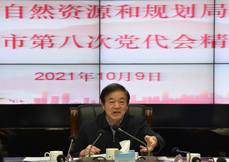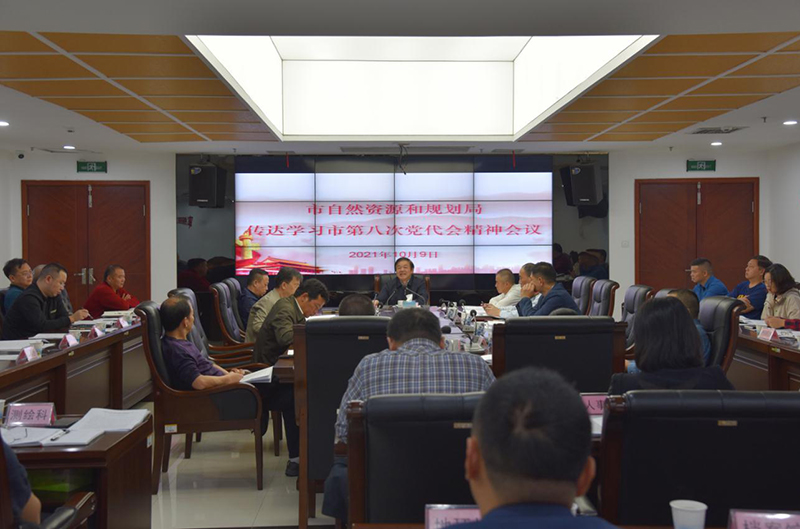 会议强调,一是要深入学习领会报告精神,党代会报告政治站位高、工作总结实、形势把握准、思路谋划新、民本情怀重、文风朴实好,生动诠释了高质量发展和生态文明建设、人民美好愿景有机统一、高度融合,要以各党支部为单位迅速掀起学习贯彻市第八次党代会精神热潮。二是要结合实际要求谋划工作,对照报告内容,认真梳理职责任务,抓牢抓实当前工作,提前谋划下段工作,做到心中有底数、有计划。三是要全力冲刺目标争先创优,要把党代会具体要求切实融入到当前各项工作目标任务中来,树立信心、鼓足干劲、主动作为、争先创优,以实效论成败、以成绩论英雄,以只争朝夕的紧迫感、实干担当的使命感全力推进自然资源和规划系统各项工作任务落实落细,为“十四五”开局之年做出应有的更大的贡献。