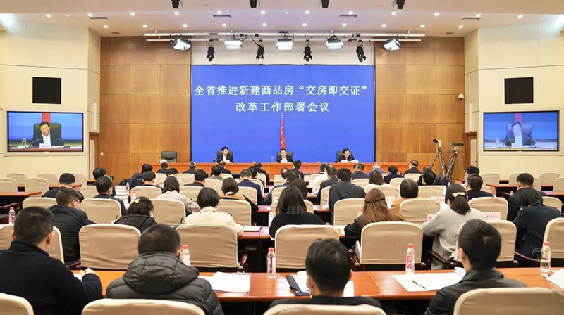12月14日上午,省政府召开全省推进新建商品房“交房即交证”改革工作部署电视电话会议,副省长陈文浩出席会议并讲话,强调深入学习贯彻党的十九届六中全会和省第十二次党代会精神,提高政治站位,切实解决房地产“办证难”问题,以最大的改革诚意、最实的工作举措,全面推进“交房即交证”改革落地见效。