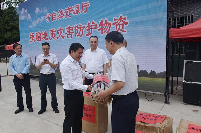 应急演练开始前,省自然资源厅向岳阳市人民政府捐赠了地质灾害防护物资,演练结束后还实地参观了临湘市詹桥镇跳石村季岩组泥石流地质灾害治理工程。