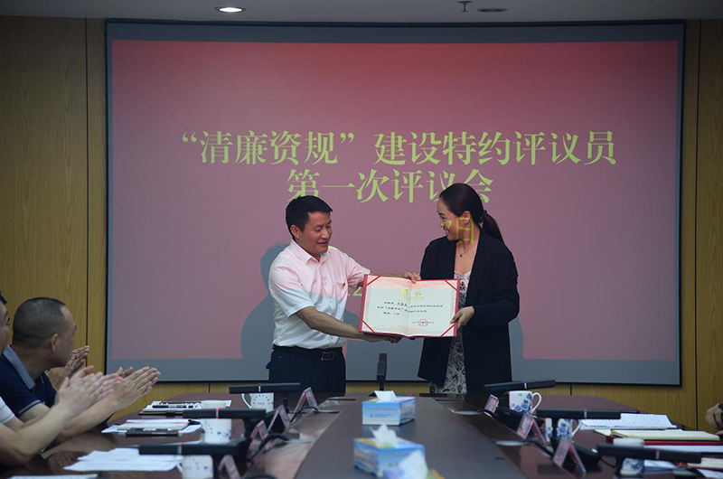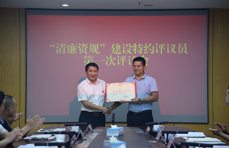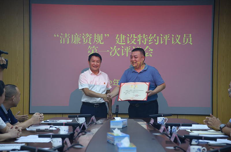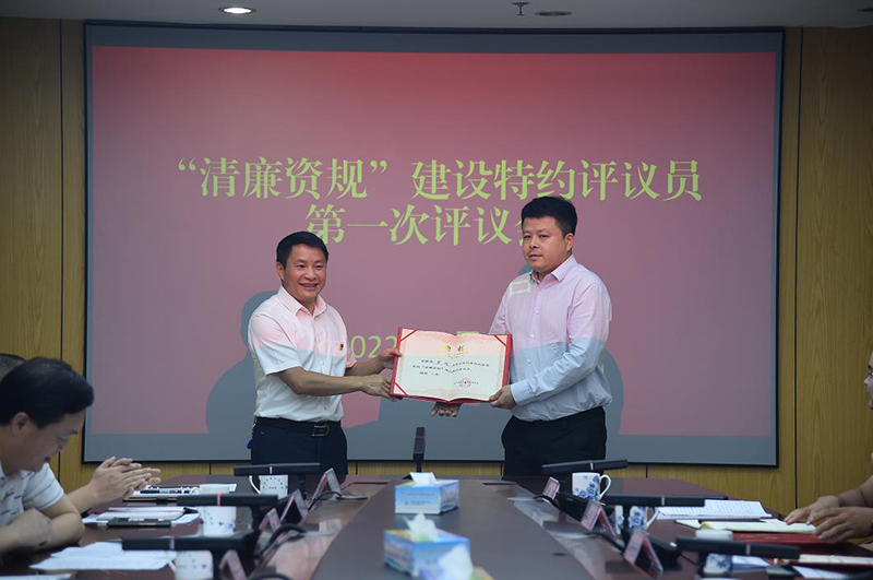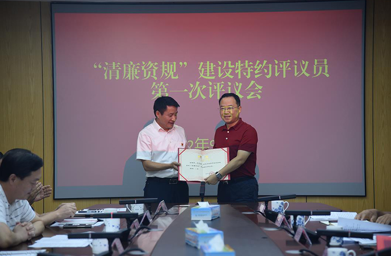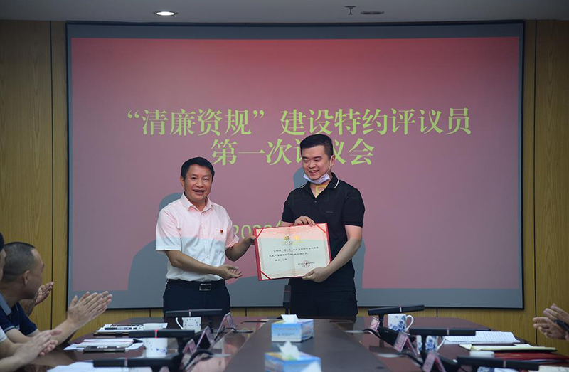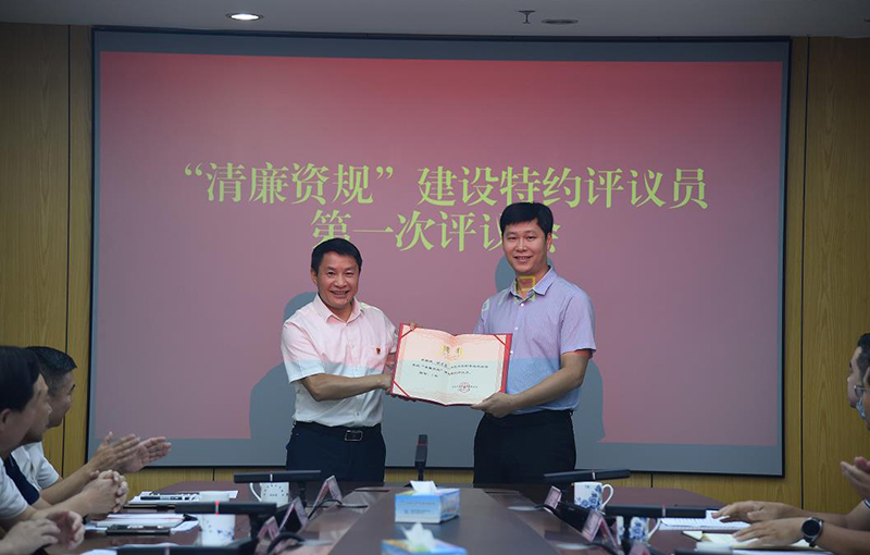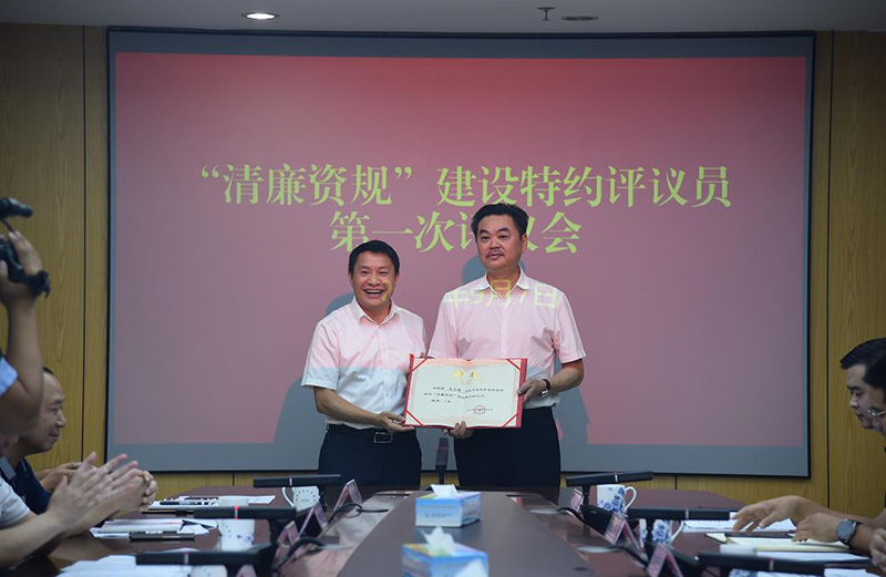清廉建设树新风,评议监督促发展,9月7日下午,市资规局召开“清廉资规”特约评议员第一次评议会。局党组书记、局长许淞出席并为特约评议员颁发聘书。市纪委监委派驻局纪检监察组组长陈虎主持会议。局领导李志宏、胡伟华、刘沧海,刘爱军、吴亚雄、林才金、刘佳琪等8名企业(国企)代表,以及局机关相关科室、二级机构主要负责人等参加了评议会。