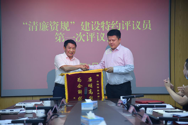 会议集中观看了《山水形胜 生景岳阳》《清廉赋能 勇毅前行》等局工作宣传片,不动产登记中心、行政执法支队和行政审批科汇报了“清廉资规”建设工作情况。随后,与会人员围绕清廉建设、优化营商环境等话题展开交流讨论,并进行评议打分。岳阳和茂置业有限公司开发部经理曾明还向我局赠送了致谢锦旗。
