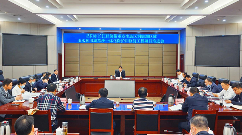 11月10日,市委副书记、市长李挚主持召开湖南岳阳长江流域洞庭湖区域山水林田湖草沙一体化保护和修复工程项目推进会,深入贯彻党的二十大精神和习近平生态文明思想,落实全省相关协调推进会议精神,进一步统一思想、细化举措、扛牢责任,高质高效推进项目落实落地。市委常委、副市长李美云,市政府秘书长孙志诚参加。市自然资源和规划局党组书记、局长许淞作项目推进情况汇报。