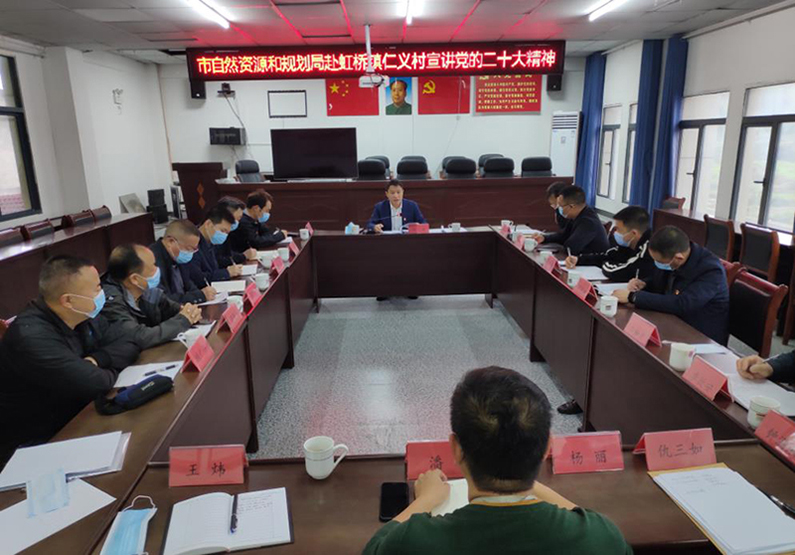 11月22日,局党组书记、局长许淞赴局联点扶贫村-平江县虹桥镇仁义村宣讲党的二十大精神,专题调研乡村振兴和田长制等工作,强调要切实做好巩固拓展脱贫攻坚成果同乡村振兴有效衔接,并就迎接省检有关准备工作进行了部署安排。局党组成员、副局长胡伟华,市规划勘测设计院有限公司党委书记、董事长刘昊,虹桥镇党委书记郑崛等陪同。