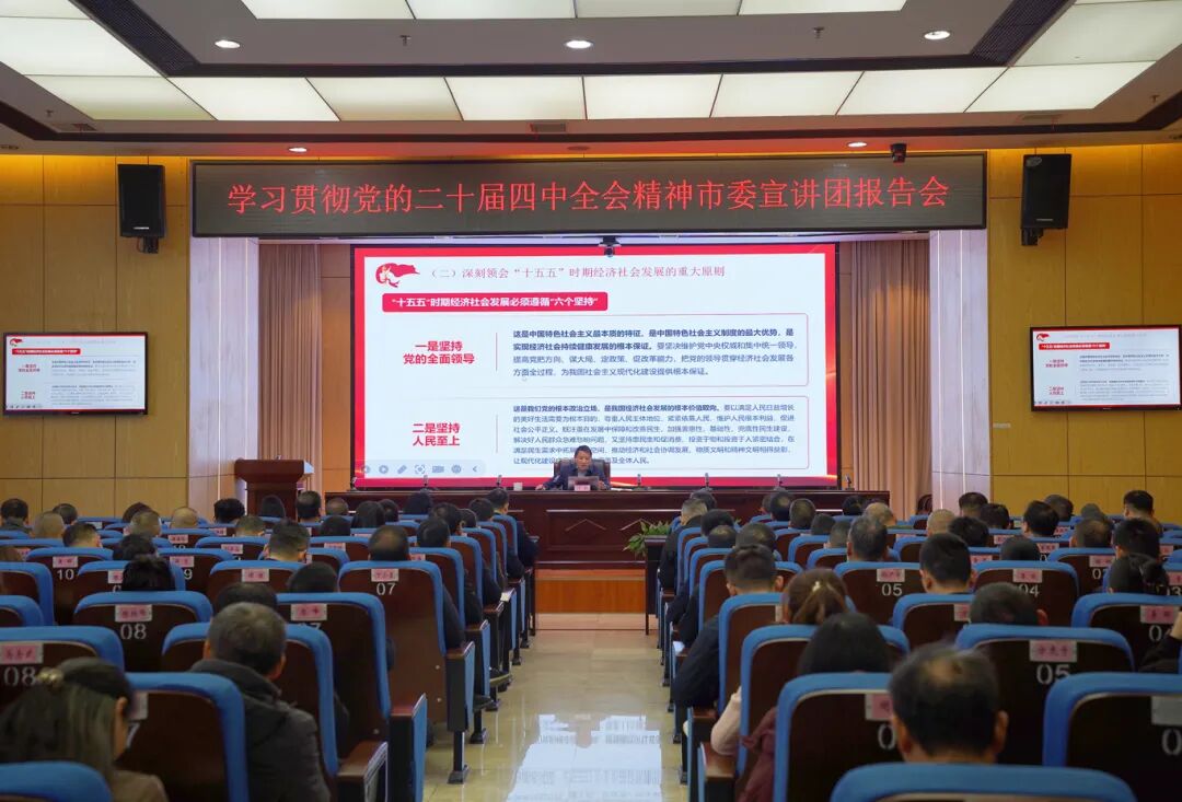 11月26日,学习贯彻党的二十届四中全会精神市委宣讲团报告会在市资规局举行。市委宣讲团成员、市资规局党组书记、局长许淞作宣讲报告。