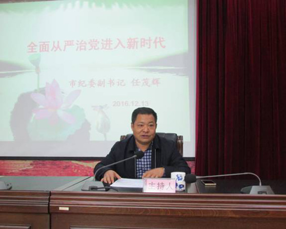 12日,全体人员自学了党的十八届六中全会、习近平总书记系列重要讲话、省第十一次党代会精神和“两学一做”学习教育读本。13日,市纪委副书记任茂辉以《全面从严治党进入新时代》为题,辅导学习党的十八届六中全会精神。各县市区局(分局、管理处)主要负责同志围绕“讲奉献,有作为”主题发言。