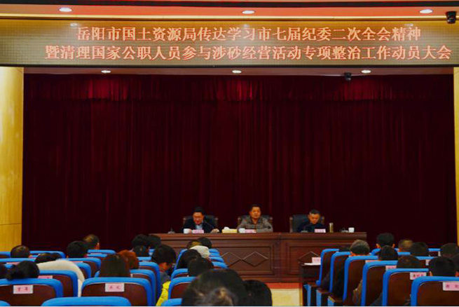 局党组成员、纪检组长周治中宣读了《岳阳市国土资源局清理国家公职人员参与采砂、运砂、浮吊、砂石码头经营活动专项整治方案》,并作工作部署。局党组副书记、副局长易拓新主持会议。
