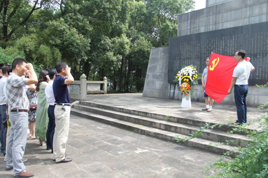 为庆祝和纪念建党96周年,深入贯彻习总书记系列重要讲话精神,落实贯彻“两学一做”学习教育,结合市局机关党建年度工作部署,6月22日,市局机关党委二支部12名党员来到华容烈士陵园,缅怀革命先烈,重温入党誓词。党组副书记易拓新同志以普通党员身份和支部党员们一起在革命烈士纪念碑前默哀致敬,缅怀先烈,并瞻仰了华容籍老将军墓区和革命先烈遗像,参观了何长工纪念馆。
