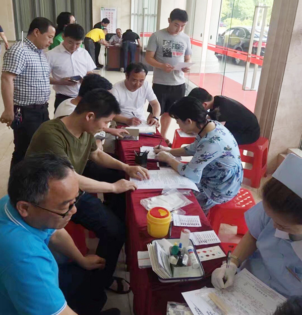 余名干部职工参加义务献血活动。经过体检、化验等程序,共有