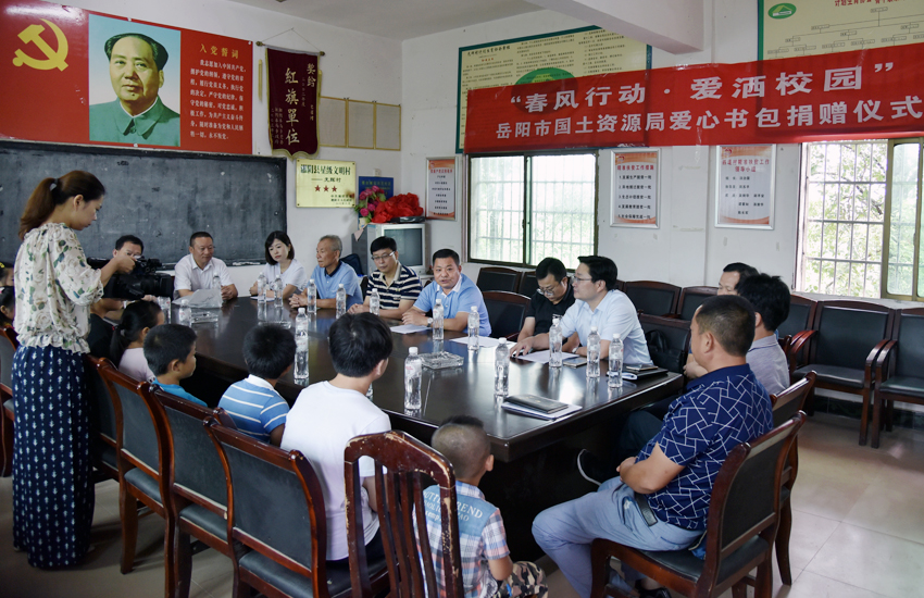 8月30日,市局前往扶贫点湘阴县新泉镇西堤村举行“春风行动 爱洒校园”爱心书包捐赠活动。市局党组书记、局长胡辉,局领导刘险峰、严菲、周治中,副调研员高大良及机关党委、机关团委、退休老同志代表等参加活动。