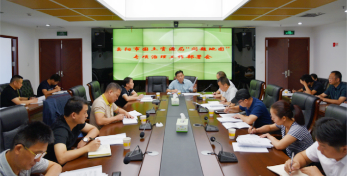 会议下发了《岳阳市国土资源局关于开展“问题地图”专项治理的通知》(岳国土资办发〔2017〕56号),明确了具体方案、工作目标、时间节点和工作措施等。成立了专门领导小组,由局党组书记、局长胡辉任组长,党组成员、执法监察支队支队长彭四林和党组成员、总经济师陈湘栋任副组长。本次“问题地图”专项治理行动集中在9月至10月,分自查整改、巡查整治、汇报总结三个阶段对全市范围内“问题地图”进行全覆盖排查整治,依法严厉查处地图违法违规行为,强化国家版图意识宣传教育,健全监管长效机制,切实保障国家地理信息全,维护国家主权、安全和利益。会议明确,本次主要整治三大类“问题地图”,即存在危害国家统一、主权和领土完整等严重问题的地图;存在危害国家安全和利益等严重问题的地图;其他不符合地图管理有关规定的地图和行为。