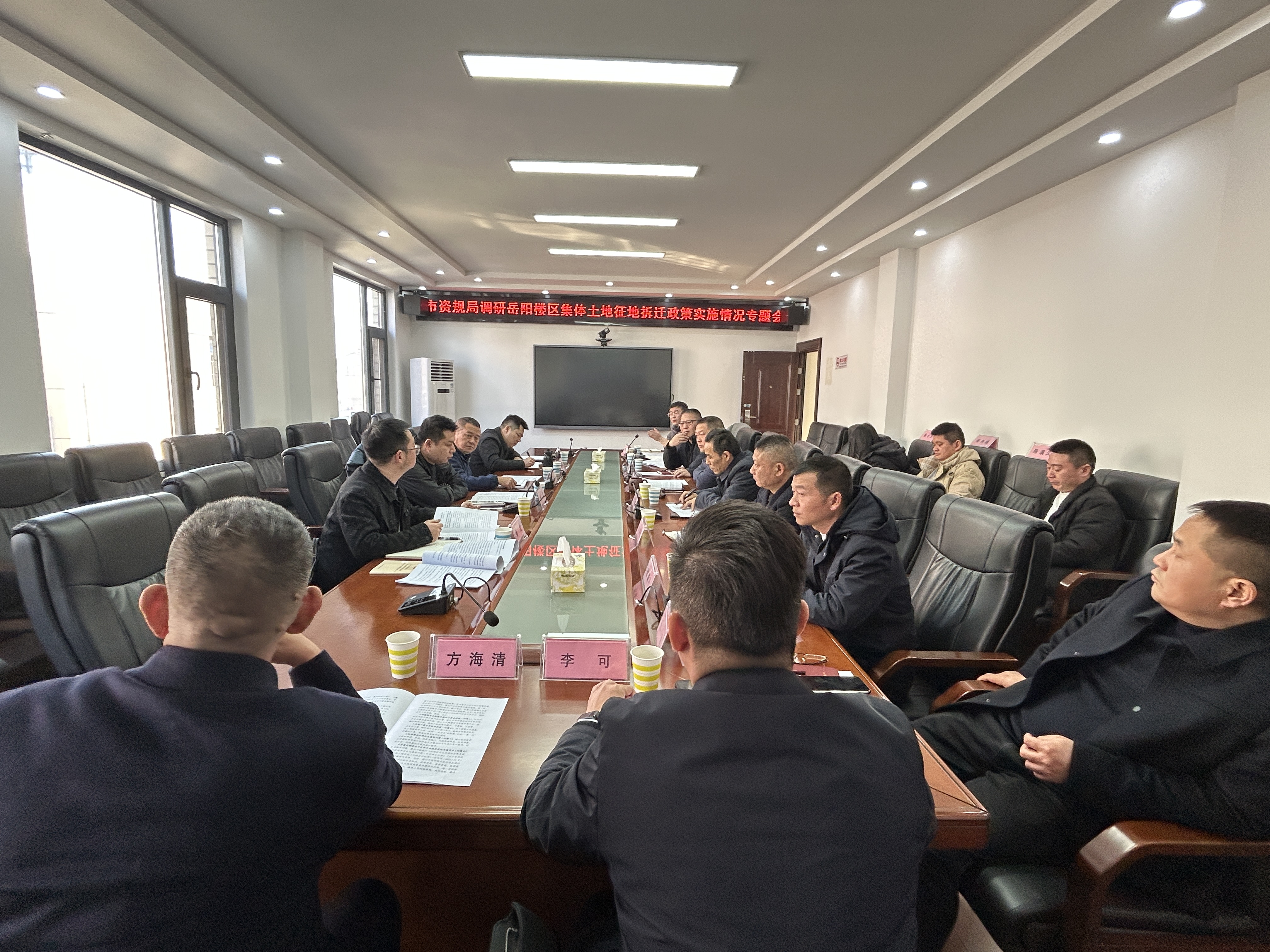 1月8日,为深入贯彻落实《中华人民共和国土地管理法》及其实施条例,进一步规范集体土地征收与房屋拆迁补偿安置工作,市自然资源和规划局调研组一行深入岳阳楼区,就集体土地征地拆迁政策实施情况开展专题调研座谈会。调研组由市土地储备中心、用途管制科等相关负责人组成,区自然资源局、区拆迁安置服务中心、梅溪街道、木里港管理处及经开区代表共同参加。