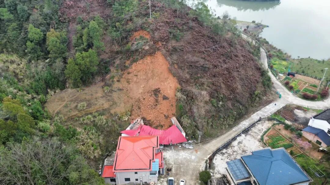 当日21时30分,该区域突发山体滑坡。滑坡体长约12米、宽约4米、高约10米,土石方量约480立方米,造成房屋损毁,直接经济损失约30万元,威胁1户2人的生命财产安全。所幸村级巡查人员提前发现、及时上报、果断转移,成功实现避险,未造成人员伤亡。