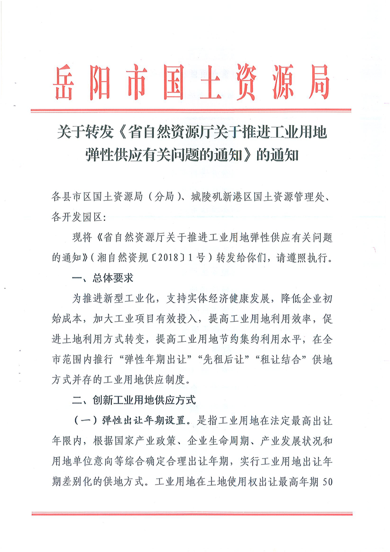 关于转发《省自然资源厅关于推进工业用地弹性供应有关问题的通知》的通知