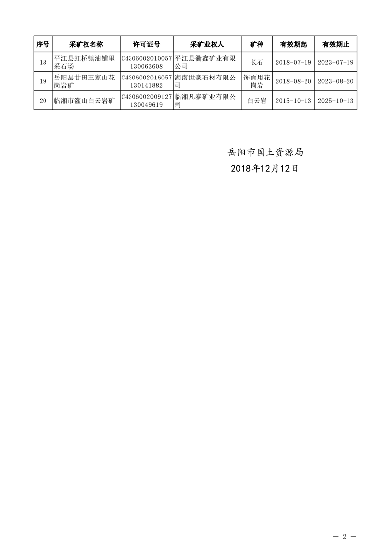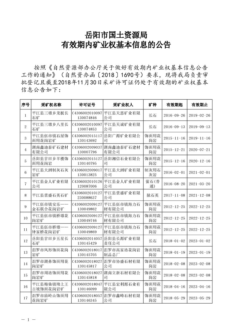 岳阳市国土资源局有效期内矿业权基本信息的公告