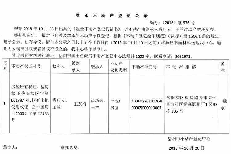继承不动产登记公示 编号:(2018)继576号