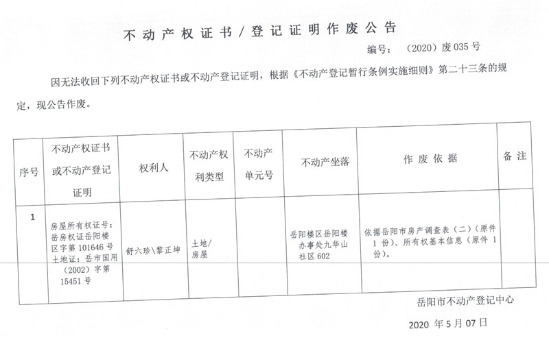 不动产权证书/登记证明作废公告(舒六珍/黎正坤)