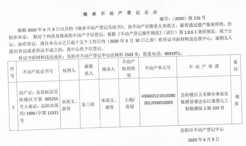 继承(受遗赠)不动产登记公告(宋高文)
