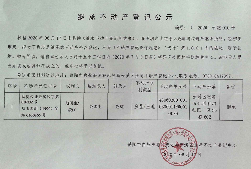 更新时间:2020-06-17 来源:岳阳市自然资源和规划局云溪区分局不动产登记中心