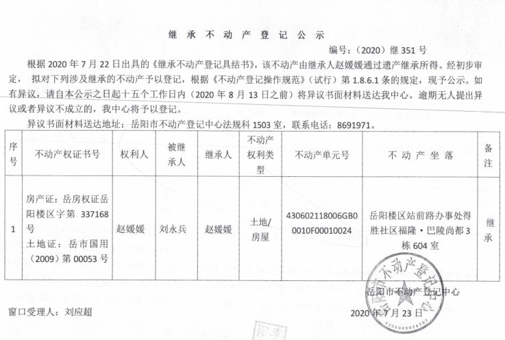 继承(受遗赠)不动产登记公告(赵媛媛)