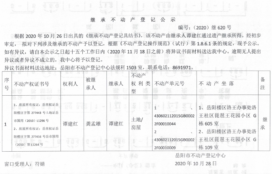 继承(受遗赠)不动产登记公告(谭建红)