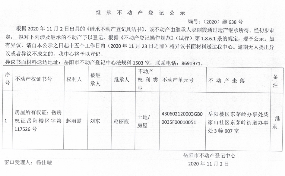 继承(受遗赠)不动产登记公告(赵丽霞)
