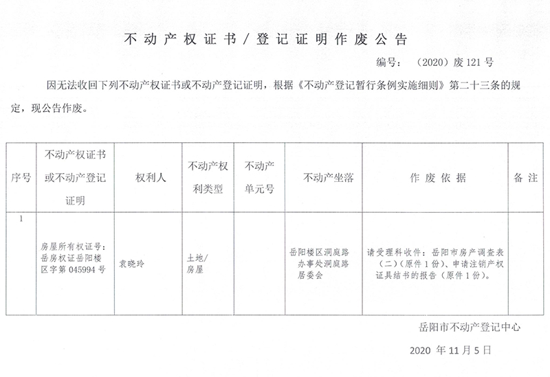 不动产权证书/登记证明作废公告(袁晓玲)