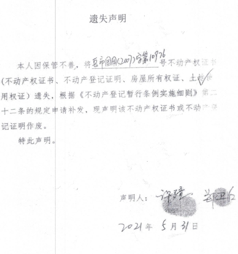 遗失声明(郑卫红)