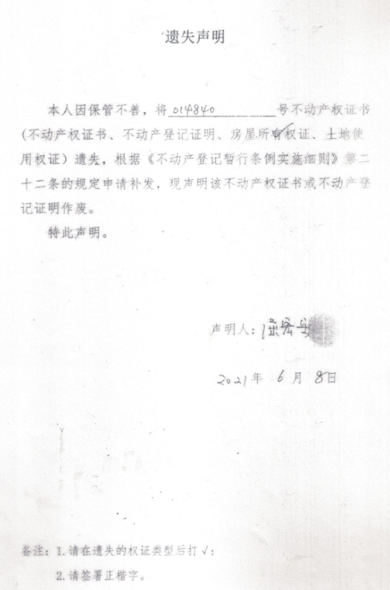 遗失声明 (屈宏岳)