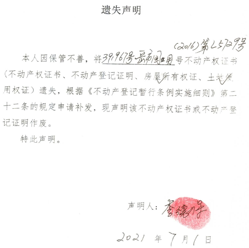 遗失声明(李德保)