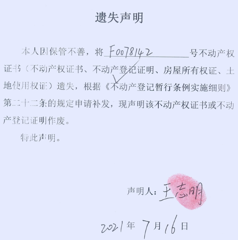 遗失声明(王志明)