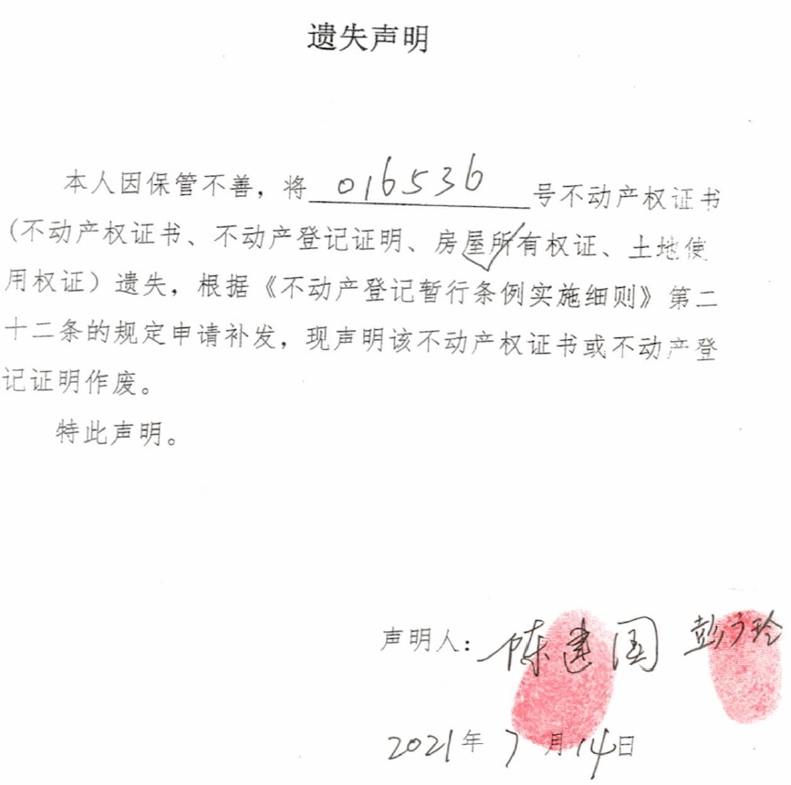 遗失声明(陈建国)